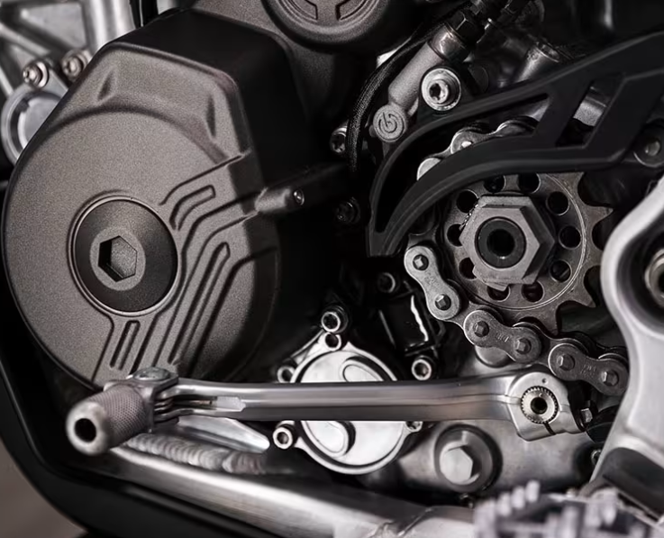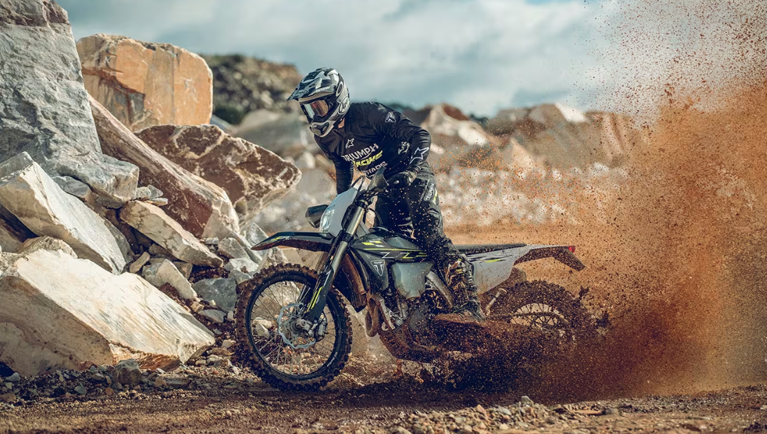 The engine character is its strength - the 249.9 cc single delivers around 42 hp and 28 Nm in a very linear, tractable way, with strong bottom and mid-range that keeps you pulling over rocks, roots, and short climbs without the chirpy, snappy feel of the pure motocrosser that Triumph initially launched over a year ago.